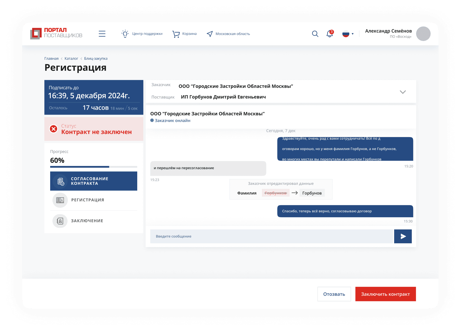 и документооборота на портале поставщиков