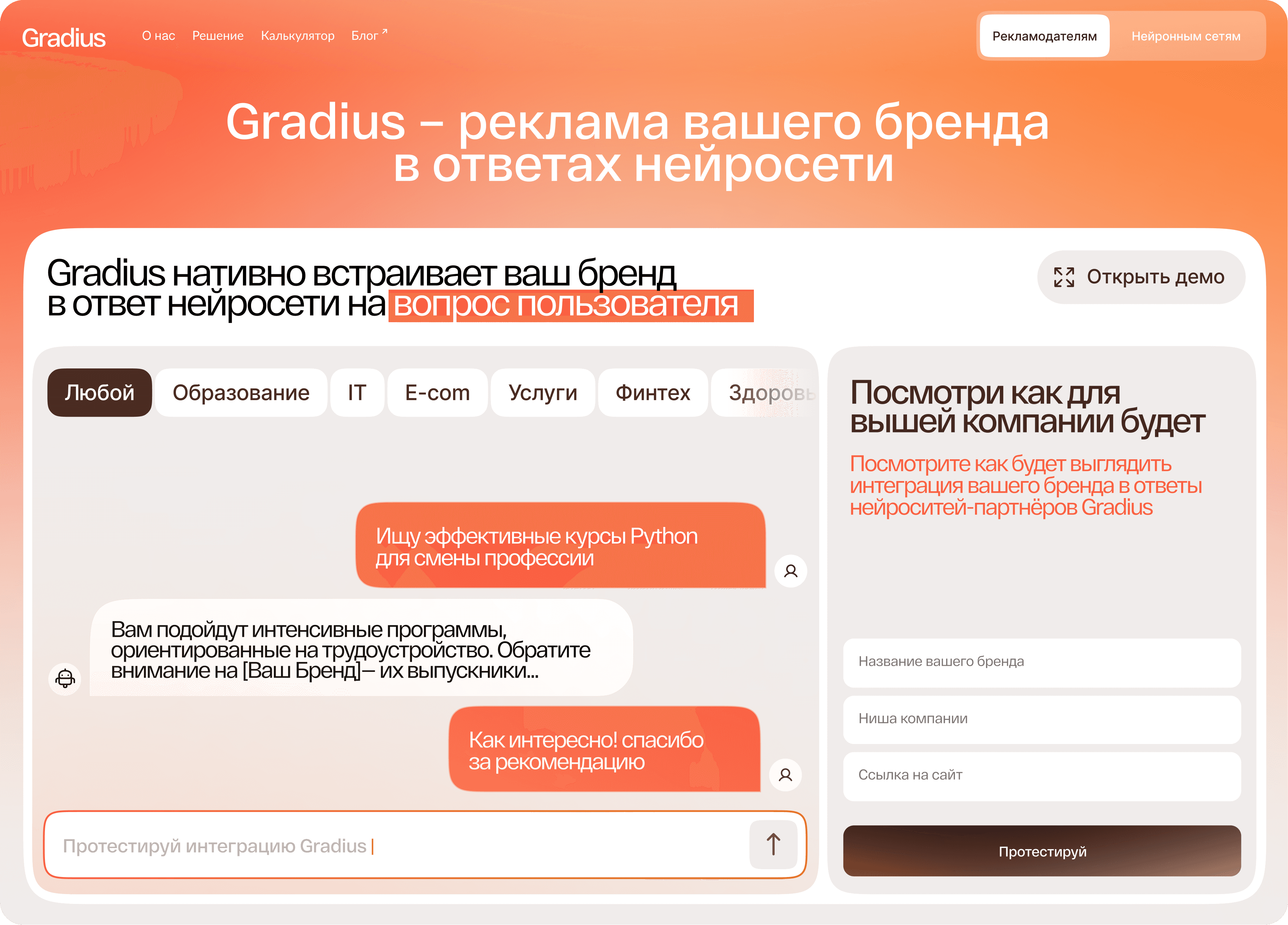 для оформления контекстной рекламы в ответы нейронных сетей