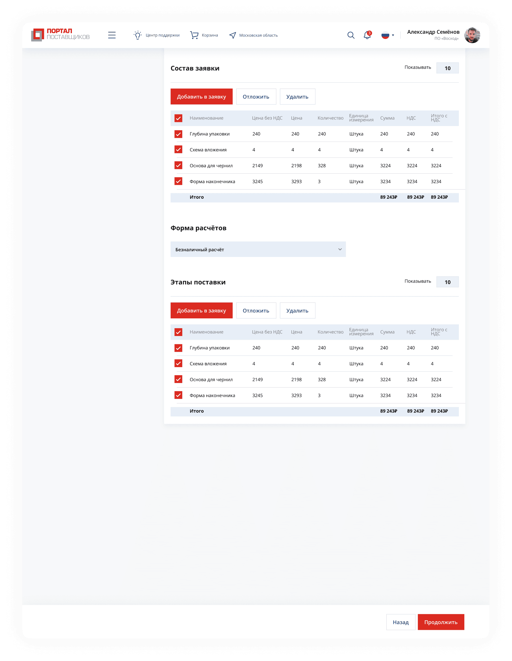 Портал поставщиков (NDA)