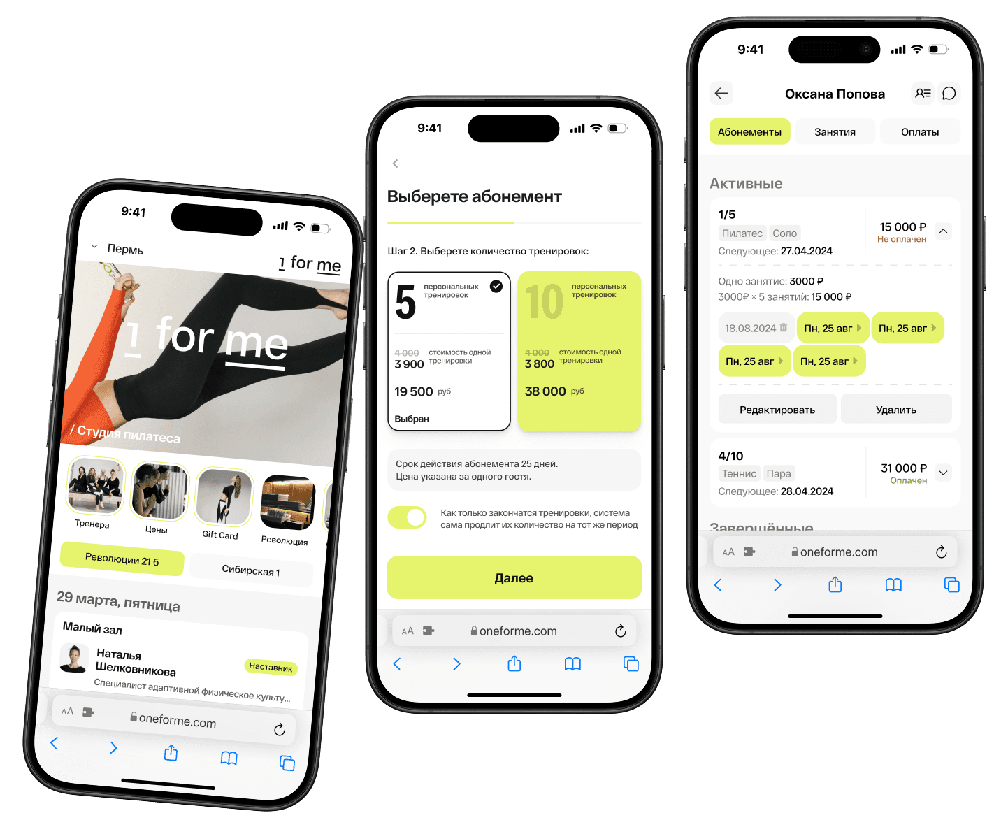 Отсутствие удобных инструментов для записи, покупки абонементов и отслеживания прогресса.