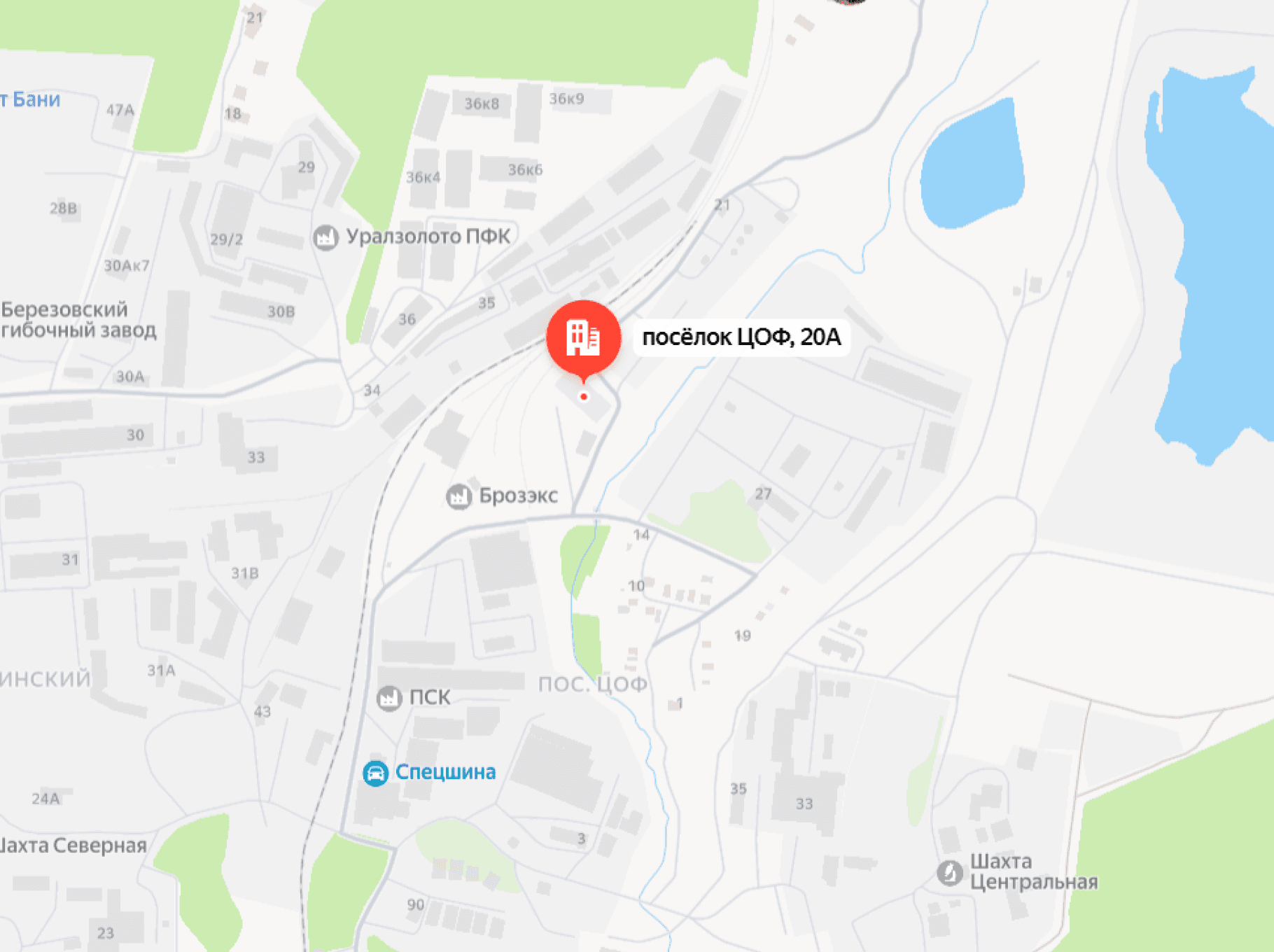 623700, Свердловская область, город Берёзовский, п. ЦОФ, 20 А